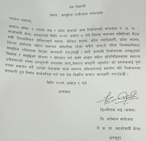 धनकुटा,नेकपा माओवादी केन्द्रका पोलिटब्यूरो सदस्य हेमराज भण्डारीसहित धनकुटामा क्रियासिल माओवादीका नेताहरुले पदबाट सामुहिक राजीनामा दिएका छन् । गठबन्धनको सीट बाँडफाँटमा असहमति जनाउँदै धनकुटाका माओवादी नेताहरुले सामूहिक राजीनामा दिएका हुन । माओवादी केन्द्रका पोलिटब्यूरो सदस्य भण्डारी, प्रदेश कमिटी सह–सचिव ऋषिराम ढुंगाना, जिल्ला संयोजक डिल्लीराम राईसहितका नेताहरुले पार्टीबाट सामुहिक राजीनामा दिएका हुन् ।धनकुटामा क्रियाशिल १५० जना नेताहरुले सामुहिक राजीनामा दिएको पत्रकार सम्मेलन गरी जनाएका छन ।पोलिटब्यूरो सदस्य भण्डारीलाई माओवादी केन्द्र धनकुटाले प्रतिनिधि सभा निर्वाचनका लागि जिल्लाबाट उम्मेद्वार सिफारिस गरेको थियो । धनकुटा इन्चार्जसमेत रहेका भण्डारी आफुलाई पार्टीको हसियाहतौडा चिन्हमा उम्मेद्वार बन्न दिन आग्रह गर्दै केही दिन अघि केन्द्रिय अध्यक्ष पुष्पकमल दाहाललाई भेट्न जानुभएको थियो ।